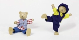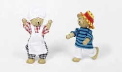 Acest set adorabil aduce o pereche de ursuleți cu o ofertă bogată de ținute și accesorii, păstrate într-o cutie din lemn bine organizată. Copiii pot potrivi căpșoare, trunchiuri și piciorușe, pot crea combinații vesele și pot învăța culorile și dispozițiile.