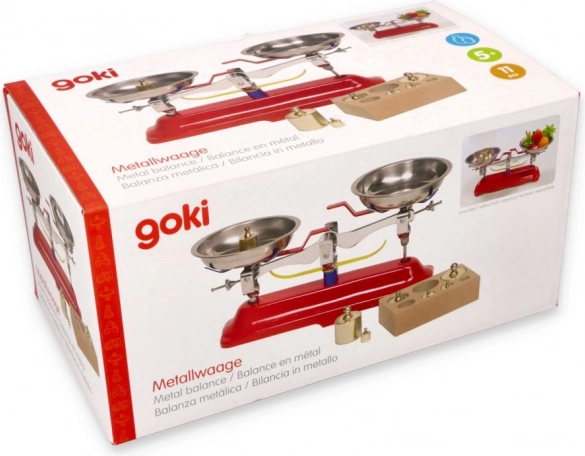 Cântarul metalic pentru copii GOKI este un instrument didactic stabil, care susține gândirea logică, motricitatea fină și abilitățile matematice de bază. Datorită construcției metalice robuste și tăvilor detașabile, manipularea este facilă și sigură. Setul inclus de șapte greutăți le permite copiilor să compare și să determine masa obiectelor într-un mod ludic.