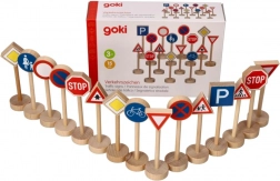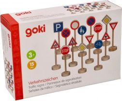 Descoperiți setul distractiv și educativ de indicatoare rutiere din lemn Goki, care îi ajută pe copii să învețe regulile de circulație într-un mod ludic. Indicatoarele robuste din lemn masiv cu culori non-toxice sunt ideale pentru joaca cu mașinuțe și pe piste auto. Se țin ușor în mână, au o înălțime de 11 cm și în pachet găsiți 15 piese pentru situații rutiere realiste.
