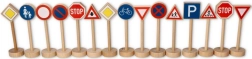 Jocul cu semnele este o excelentă pregătire pentru terenul de educație rutieră și un accesoriu potrivit pentru toate drumurile și pistele auto din lemn sau plastic. Culorile sigure, intense sunt non-toxice și potrivite pentru copii de la 3 ani.