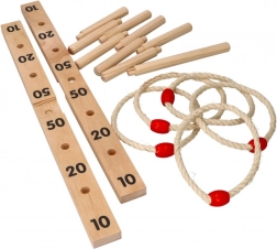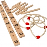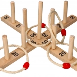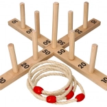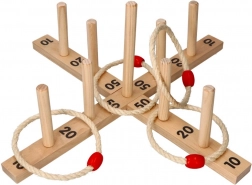 Acest joc include o bază în formă de cruce cu 9 stâlpi din lemn și cinci inele de sfoară cu element din lemn pentru o aruncare ușoară. Jocul este fabricat din lemn de calitate, ceea ce asigură o distracție de lungă durată.