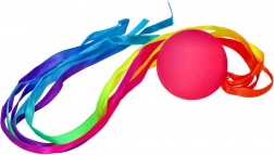 Panglicile multicolore atașate de mingiuță oferă fiecărei aruncări dinamism și varietate în mișcare.