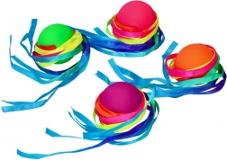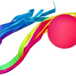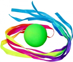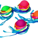 Jucăria care combină o mingiuță colorată decorată cu panglici viu colorate oferă o experiență interactivă și vizual atractivă. Mingiuța este ușoară și ușor de folosit, ideală pentru activități în aer liber și jocuri de mișcare pentru copii.
