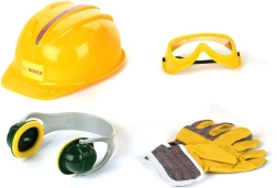 - Echipare completă pentru micii meșteri: cască, mănuși, ochelari, protecție auditivă