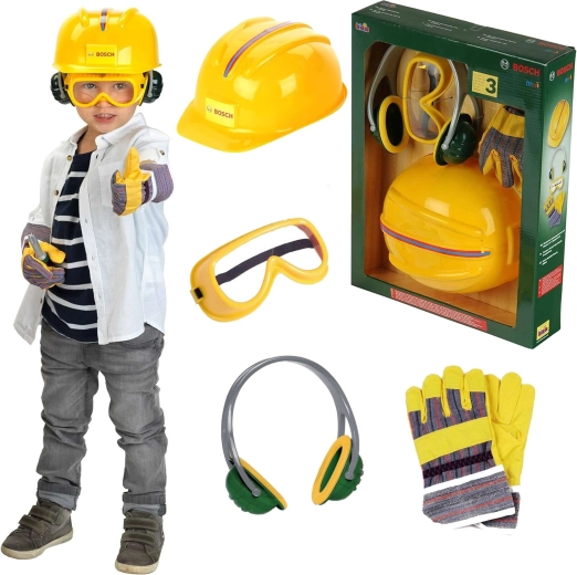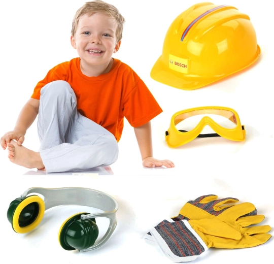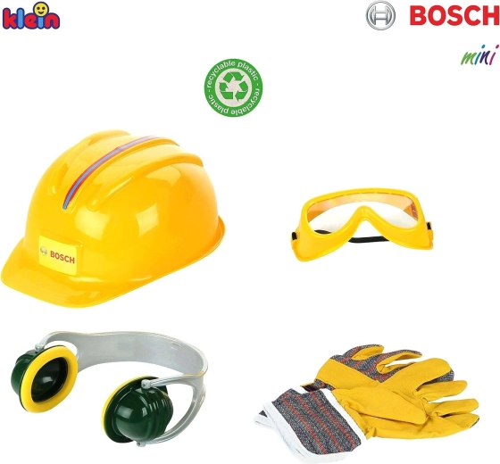 Set distractiv și sigur pentru micii constructori de la brandul Klein, licențiat BOSCH mini, include o cască de protecție pentru copii, ochelari, căști antifonice și mănuși. Perfect pentru joaca de-a reparatorul, dezvoltarea imaginației și jocul de rol, cu accent pe „siguranța la lucru” în viziune pentru copii.