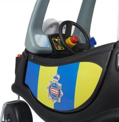 Legendara Little Tikes Cozy Coupe în versiune de poliție aduce copiilor o experiență autentică de condus. Datorită aspectului prietenos, volanului cu buton și „panoului” colorat de instrumente, micii șoferi se vor bucura de multă distracție de tip role-play. Construcția stabilă din plastic este pregătită pentru aventuri zilnice.