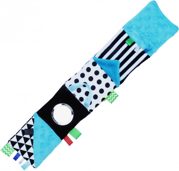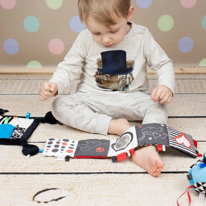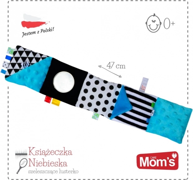 Această carte textilă moale este concepută special pentru nou-născuți și sugari. Modelele cu contrast atrag atenția copilului și sprijină dezvoltarea vederii, în timp ce texturile variate și elementele foșnitoare încurajează percepția tactilă și degețelele curioase. Oglinda sigură integrată ajută copilul să-și descopere propria reflectare și să exerseze contactul cu sine.