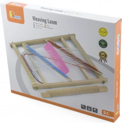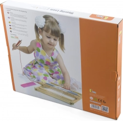 Elementul rotativ ridică alternativ firele de urzeală, astfel încât trecerea suveicii este rapidă, precisă și distractivă. Copiii învață principiile țesutului natural și jucăuș.