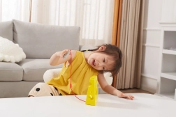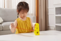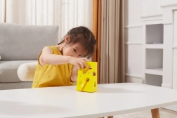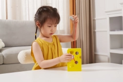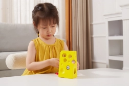 Această „brânză” galbenă cu orificii și șnur roșu cu șoricel îi încurajează pe copii să exerseze degețelele într-un mod distractiv. Înșiruirea prin orificii dispuse diferit susține îndemânarea manuală, simetria mișcărilor și gândirea logică.