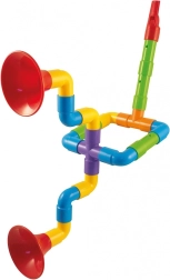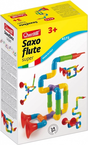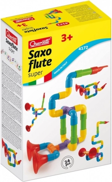 Copiii pot crea cu setul Quercetti Saxoflute Super propriile instrumente muzicale, precum saxofoane, flaute și trompete, din tuburi și conectori de plastic colorat. Setul conține 24 de piese, care permit combinații și forme diverse. Astfel, jucăria dezvoltă nu doar gândirea creativă, dar și motricitatea fină și imaginația.