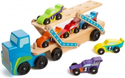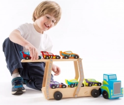 Acest transportor de mașini din lemn oferă o oportunitate excelentă pentru un joc distractiv și educativ. Copiii pot încărca și descărca cu ușurință vehiculele, sprijinind fantezia și coordonarea. Jucăria este realizată din lemn de calitate, asigurând durabilitate îndelungată și oferind o experiență tactilă plăcută.