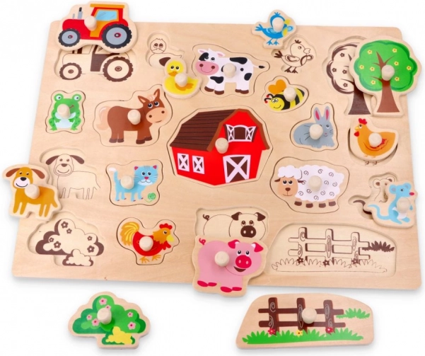 Acest puzzle robust din lemn le oferă copiilor o primă familiarizare cu lumea fermei. Piesele colorate, lăcuite, cu contururi clare se potrivesc ușor în suportul din lemn natural. Fiecare piesă se prinde bine datorită mânerului, chiar și de mâinile mici, susținând dezvoltarea motricității fine și a răbdării.