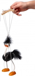 Marioneta are corp negru, picioare și cap albe cu picioare portocalii proeminente. Detaliile prietenoase și moi de pe cap și coadă contribuie la aspectul său jucăuș. Copiii vor adora cum se mișcă acest struț și cât de ușor este de controlat.