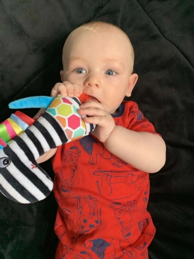 Jucărie senzorială de dentiție pentru bebeluși cu zornăitoare – Varianta A