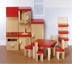 Set de bucătărie stilat pentru păpuși din seria Goki Basic, apreciat pentru designul clasic, lemnul masiv și execuția stabilă. Potrivit excelent pentru căsuțele de păpuși sau pentru joc independent. Pachetul include 9 piese de mobilier, inclusiv un blat de bucătărie cu înălțimea de 14,3 cm.