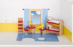 Un set frumos de mobilier din lemn pentru păpuși din gama GOKI Basic transformă orice căsuță într-o cameră de copii primitoare. Oferă execuție solidă din lemn masiv, construcție stabilă și un set bogat de 11 piese de mobilier și accesorii într-o plăcută combinație de lemn natural și roșu. Ideal pentru jocuri creative și imaginative și compatibil cu toate căsuțele pentru păpuși GOKI.