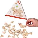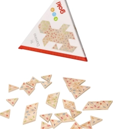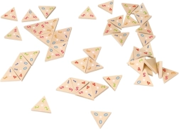 Acest joc nu doar că asigură ore de distracție, dar și exersează observația și gândirea logică a copiilor. Conține 76 de piese triunghiulare cu numere colorate și un ghid de utilizare. Datorită execuției din lemn, oferă o experiență tactilă plăcută.