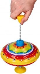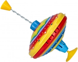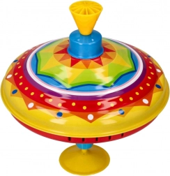 Jucăria tradițională din metal Titirez Curcubeu este iubită de copii pentru simplitatea și distracția pe care o oferă. O bază stabilă asigură că titirezul nu se va răsturna și se rotește ușor pe orice suprafață.