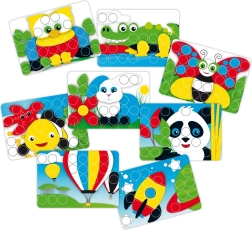 Jocul mozaic inspiră copiii să creeze și să învețe în mod distractiv diverse modele și culori.