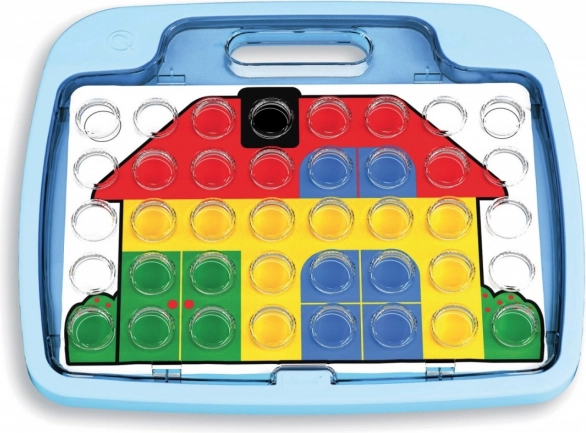Quercetti Mozaic Pixel Junior este o jucărie educativă care susține dezvoltarea coordonării și a abilităților motorii fine. Setul conține butoane colorate și o placă transparentă pe care se pot plasa modele folosind 8 carduri modelate plasate sub placă.