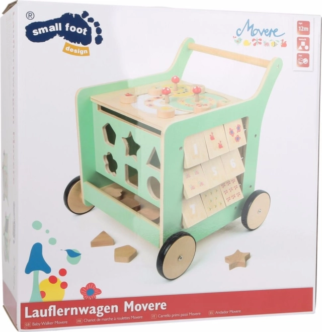 Acest cărucior din lemn ajută la dezvoltarea fineței motorice datorită funcției sale de împingere și integrării activităților de joc.