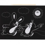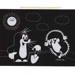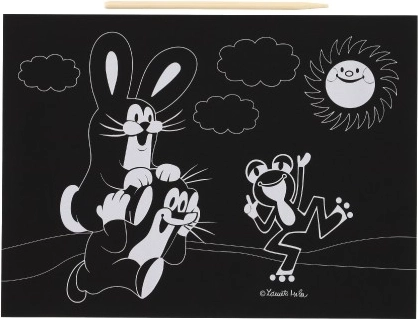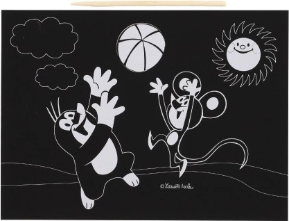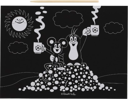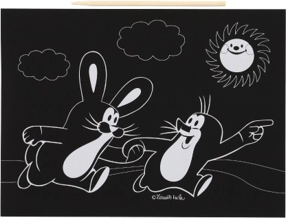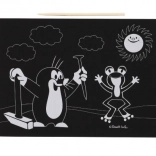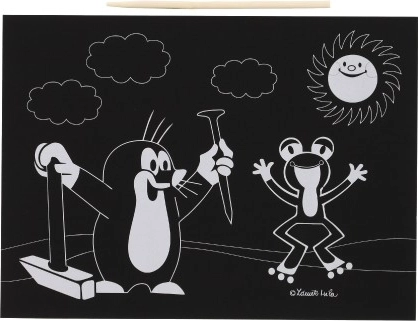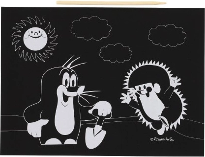 Bucurați-vă de distracția creativă cu tabloul de zgâriat cu motivele Krtek și prietenii săi. Cu ajutorul spatulei de lemn dezvăluiți straturile colorate ascunse.