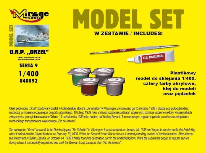 Setul conține un model de submarin din plastic pentru asamblare.