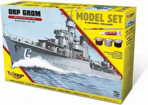 Acest model de kit este ideal pentru modeliştii experimentați care doresc să creeze o replică fidelă a distrugătorului polonez ORP 'Grom' din al Doilea Război Mondial. La scara 1:400, modelul conține piese detaliate și accesorii, care includ: