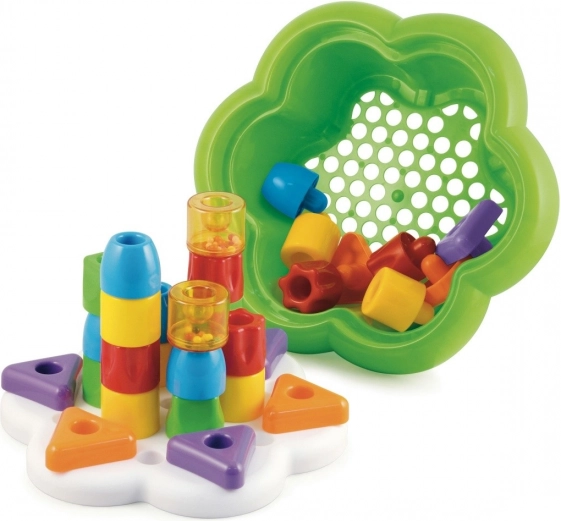 Setul de construcție QUERCETTI Chunky Peggy este mozaicul ideal pentru copii de la 12 luni. Piesele mari și colorate se țin plăcut în mână, se introduc ușor în baza flexibilă și îi motivează pe cei mici să descopere culori, forme și primele construcții. La finalul jocului, totul se depozitează simplu în cutia elegantă în formă de floare.