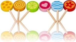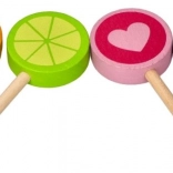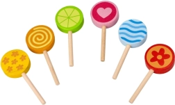 Descoperiți bucuria jucăriilor colorate și din lemn, sub formă de acadele delicioase de la Goki. Acest set conține șase designuri diferite, inclusiv dungi, flori și inimioare. Fiecare dintre ele este ideal pentru imaginația și jocul copiilor în același timp.