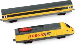 Trenul model RegioJet de la Student Agency este alegerea ideală pentru toți iubitorii de căi ferate. Cu acest set original, care include o locomotivă galbenă și un vagon galben, puteți pleca în aventuri de neuitat. Setul include 12 șine curbate și 6 șine drepte, permițând să creați o cale ferată cu dimensiuni de până la 147 x 121 cm. Șinele pot fi ușor aranjate pentru a crea două circuite pentru o operare realistă.