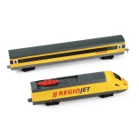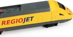 Trenul model RegioJet este proiectat cu grijă, punând accent pe detalii, inclusiv culori și mărci autentice.