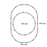 Sistemul de șine permite crearea a două circuite, unul interior cu dimensiuni de 101 cm și unul exterior de 147 cm.
