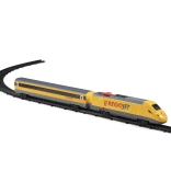 Locomotiva cu lungimea de 23,5 cm și vagonul cu lungimea de 30 cm sunt fabricate din plastic rezistent și sunt acționate de două baterii AA (nu sunt incluse în pachet). Pornirea și oprirea sunt ușoare datorită comutatorului lateral ON/OFF de pe locomotivă.
