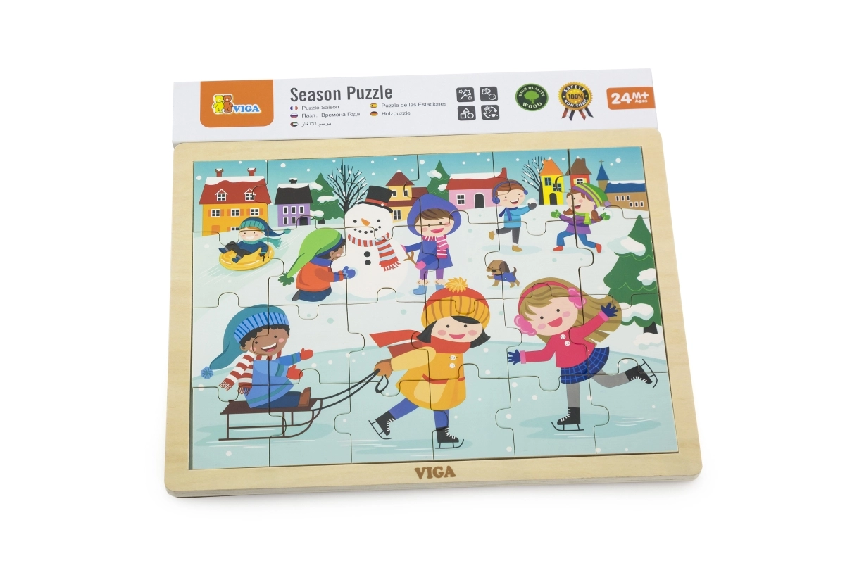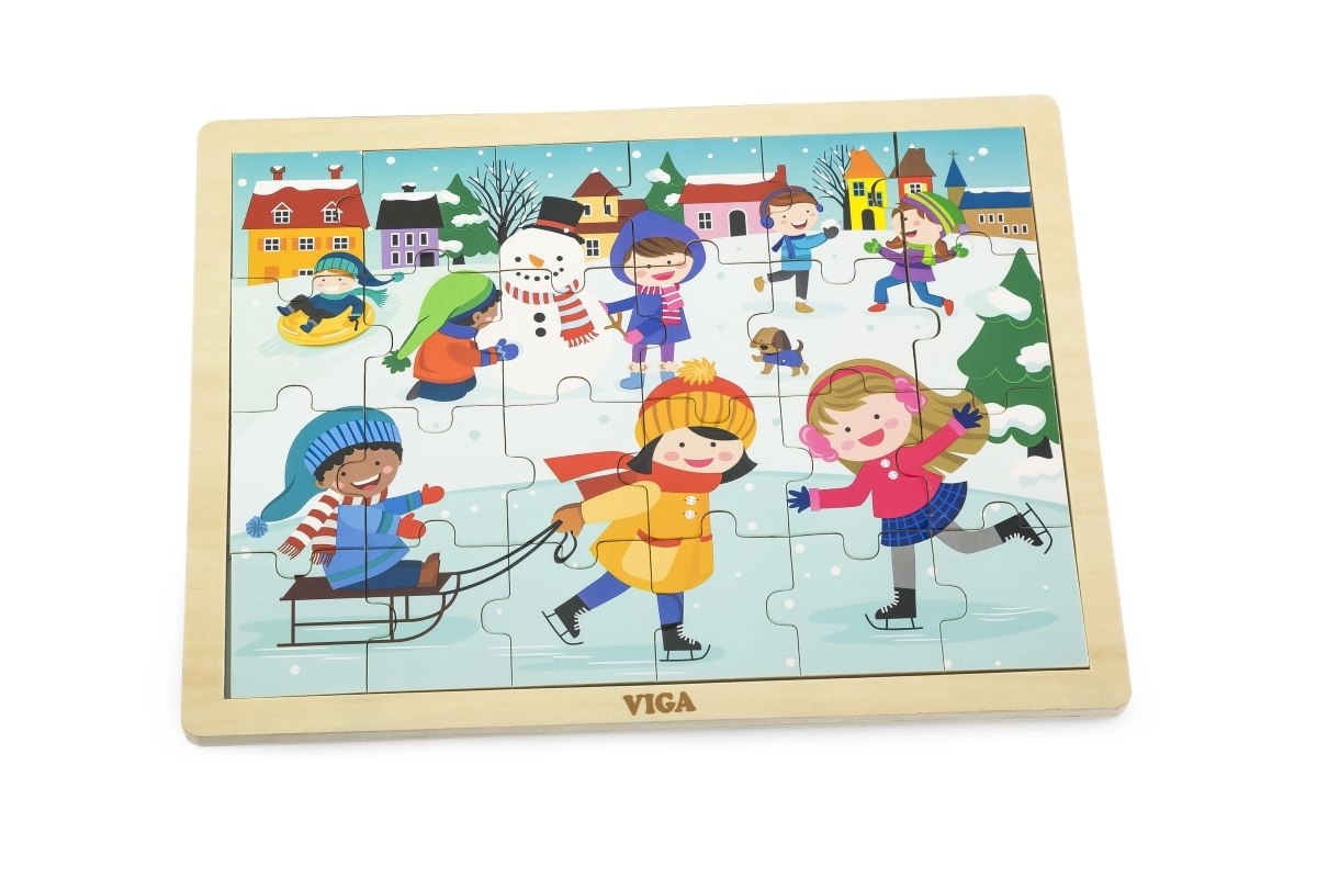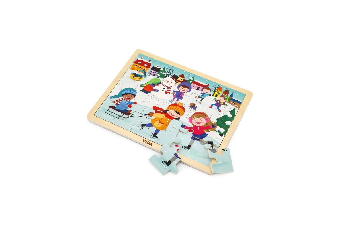 Acest puzzle din lemn cu imagine de iarnă este o alegere excelentă pentru copiii de la 24 de luni. Dimensiunea pieselor este adaptată mânuțelor copiilor, iar construcția solidă asigură o durată de viață îndelungată. Cu cele 24 de piese, copiii își exersează concentrarea și se bucură de imaginea finalizată.