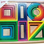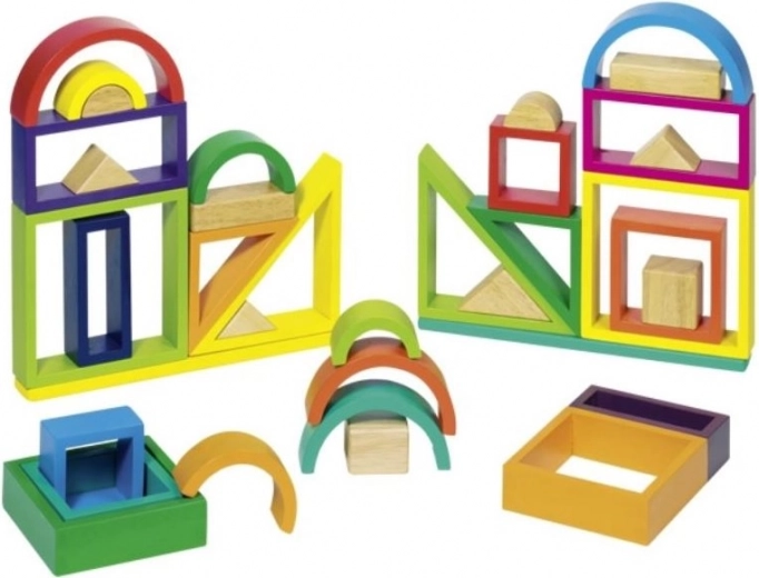 Setul de construcție din lemn Goki Curcubeu oferă copiilor posibilități nesfârșite de construit și de învățare prin joc. Datorită celor 38 de piese de calitate, în culori vii, se pot crea cu ușurință combinații originale care stimulează imaginația și percepția vizuală. Formele și culorile variate încurajează în mod natural experimentarea și descoperirea.