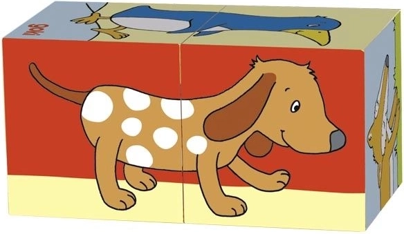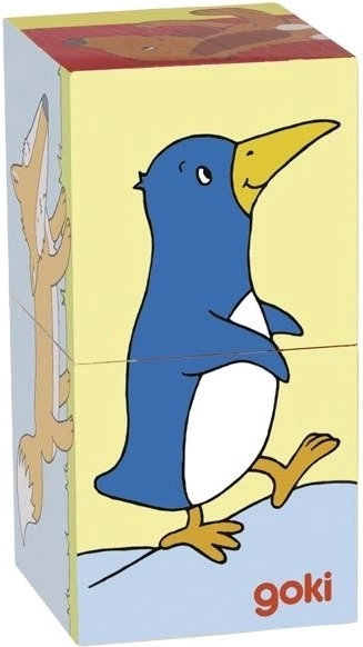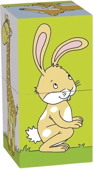Oferiți celor mici bucuria de a asambla cuburi de lemn cu motive adorabile de animale. Aceste cuburi permit crearea a șase imagini diferite: vulpe, elefant, pinguin, câine, girafă și iepure. Fiecare asamblare este o provocare pentru imaginația și abilitățile copilului.
