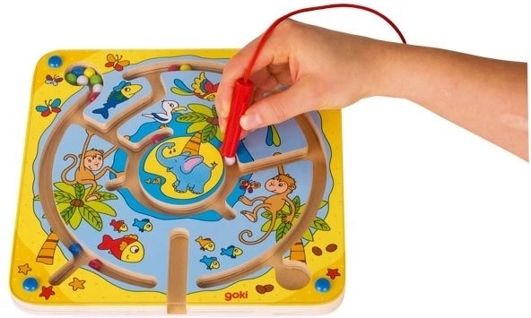 Acest labirint magnetic este conceput pentru a inspira copiii să se joace și să învețe. Datorită prelucrării lemnoase și construcției de calitate, jucăria este solidă și durabilă. Copiii pot muta bilele colorate în două moduri - în mod tradițional cu tijă magnetică sau separând bilele după culoare către diferite obiective.
