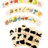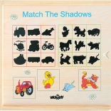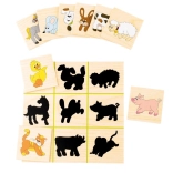 Plăcuțele din lemn colorate, cu ilustrații ale animalelor și vehiculelor, sunt asociate de copii cu umbrele corespunzătoare. O formă distractivă care susține diferențierea formelor și antrenează atenția.