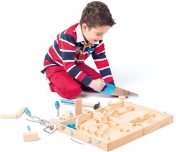 Jocul cu fierăstrăul, ciocanul sau șurubelnițele dezvoltă coordonarea și îndemânarea. Copiii îi imită pe adulți și descoperă în siguranță lumea reparațiilor și a construcțiilor.