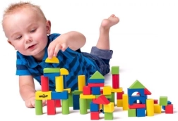 Acest set atemporal de cărămizi din lemn oferă copiilor posibilități nesfârșite de construcție și învățare prin joc. Formele variate și culorile vii invită la experimentare, sortare și aranjare, dezvoltând în mod natural abilitățile de coordonare și gândirea logică.