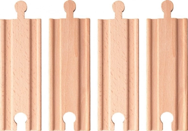 Extindeți traseul de tren de lemn cu un set practic de patru șine drepte de 11 cm. Acest accesoriu este compatibil cu sisteme populare precum BRIO, IKEA sau Eichhorn și vă ajută să prelungiți cu ușurință traseul și să creați noi combinații. Ideal pentru copii de la 3 ani.