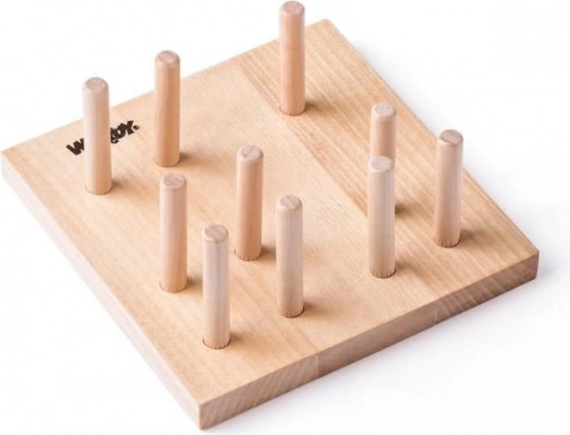 Introducerea pieselor pe pini antrenează prinderea precisă, coordonarea mână–ochi și susține capacitatea de concentrare.