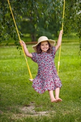 Leagănul este dotat cu inele metalice pe corzile de agățat, care permit o prindere simplă și sigură.