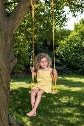 Leagănul de lemn este proiectat pentru a garanta nu numai distracție, ci și siguranță copiilor în timpul balansării. Este fabricat din lemn de calitate, robust și rezistent. Lungimea corzilor, inclusiv leagănul, este de 195 cm, ceea ce permite o agățare ușoară de aproape orice copac sau bară. Inelele metalice pentru agățare sunt deja incluse, însă recomandăm utilizarea cârligelor rotative pentru un efect mai bun de balansare.