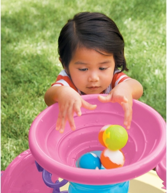 LITTLE TIKES Spiralin' Seas este un parc acvatic distractiv care îi atrage pe copii în lumea experimentelor cu apa. Datorită designului roz-bej, turnului în spirală și roții de apă, copiii observă curgerea, rotirea și stropirea, dezvoltând în același timp motricitatea fină, coordonarea mână-ochi și abilitățile sociale în jocul împreună.