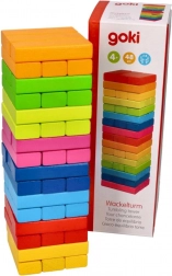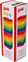 Turnul de echilibru de la GOKI aduce un joc clasic plin de tensiune într-o variantă modernă, curcubeu. Fiecare nivel este alcătuit din trei plăcuțe de lemn colorate, pe care le așezați într-un turn stabil, apoi mutați cu grijă câte o piesă pe vârful acestuia. Scopul este să mențineți echilibrul cât mai mult.