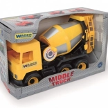 Jucăria Betonieră Galbenă Middle Truck este fabricată din plastic rezistent, concepută pentru a suporta chiar și cele mai îndrăznețe proiecte ale copiilor tăi. Este echipată cu un tambur rotativ și o tavă detașabilă pentru betonare, permițând un joc realist. Dimensiunea jucăriei este de 38 cm, asigurând o manipulare ușoară pentru mâinile mici.