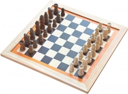 Tablă de șah cu contrast și piese din lemn în set complet de start. Ideal pentru antrenarea strategiei și a concentrării.