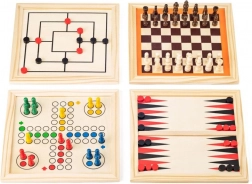 Acest set universal din lemn 4‑în‑1 reunește jocuri clasice strategice și de familie într-un singur pachet elegant. Datorită lemnului natural solid și componentelor realizate cu precizie, te vei bucura de ore îndelungate de joc și de antrenarea gândirii logice, concentrării și fair‑play‑ului.